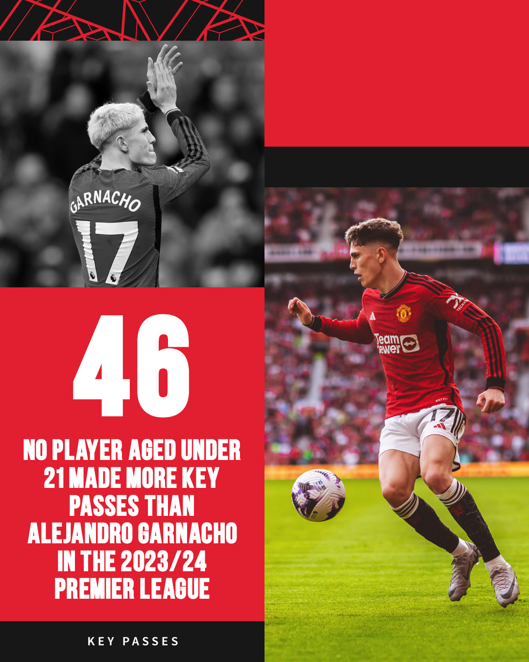 Алехандро Гарначо отдал 46 ключевых пасов в сезоне 23/24 Английской Премьер-лиги — это лучший результат среди игроков до 21 года.